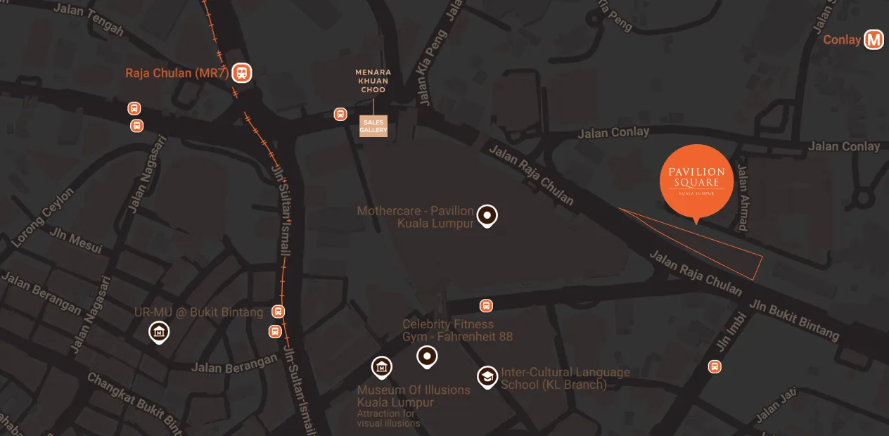 Pavilion Square 坐落於吉隆坡黃金三角核心地段,為市中心罕見的永久產權純住宅規劃。周邊匯聚地鐵、百貨與即將成為高端商業與辦公區的發展計劃,這一區域的商業規劃將進一步增強整體價值與居住吸引力。地段稀有、產品稀缺,堪比台北信義區核心區位,是資產配置買家的首選標的。