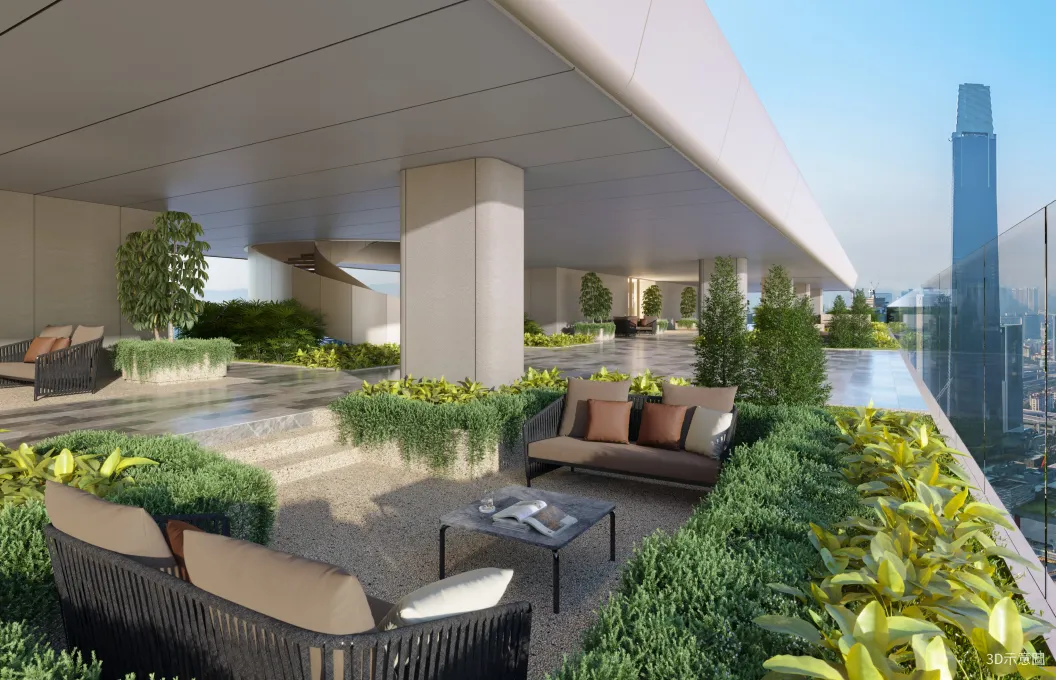 位於66樓的空中花園,提供壯麗的城市景觀,為住戶提供寧靜與放鬆的理想場所。這片社交空間同時提升居住質感,讓每位住戶在城市與自然中找到和諧的平衡。